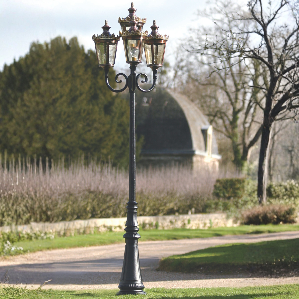 - Lykthus i koppar på svart stolpe i Jet Black 000 + dekor i Gold Patina 009