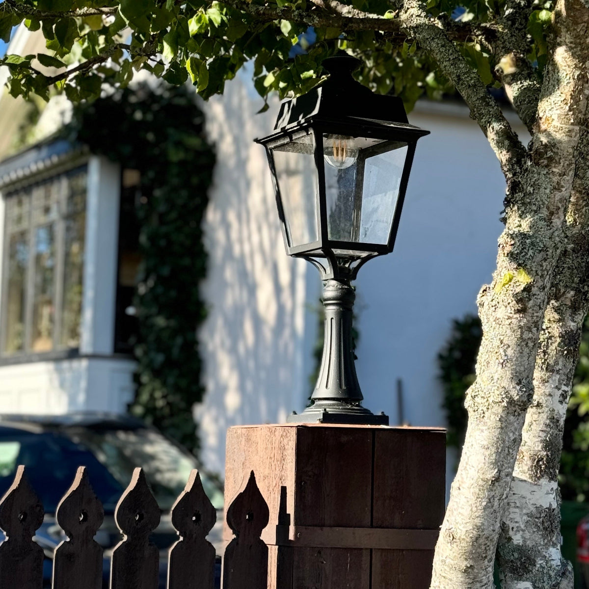 Kort stolpbelysning med täckt ovansida och glasad botten ∙ Passar till grindstolpar