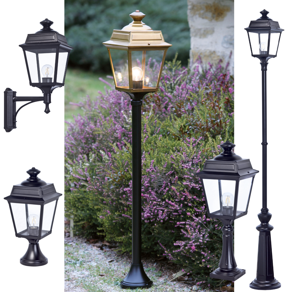 Lykthus mässing på svart stolpe Jet Black 000= RAL 9005
