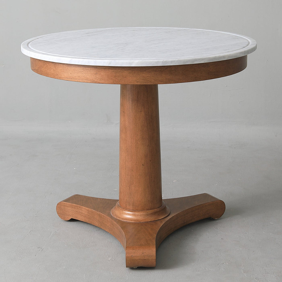 Ett mindre runt bord - Underrede i bok med bordsskiva i marmor