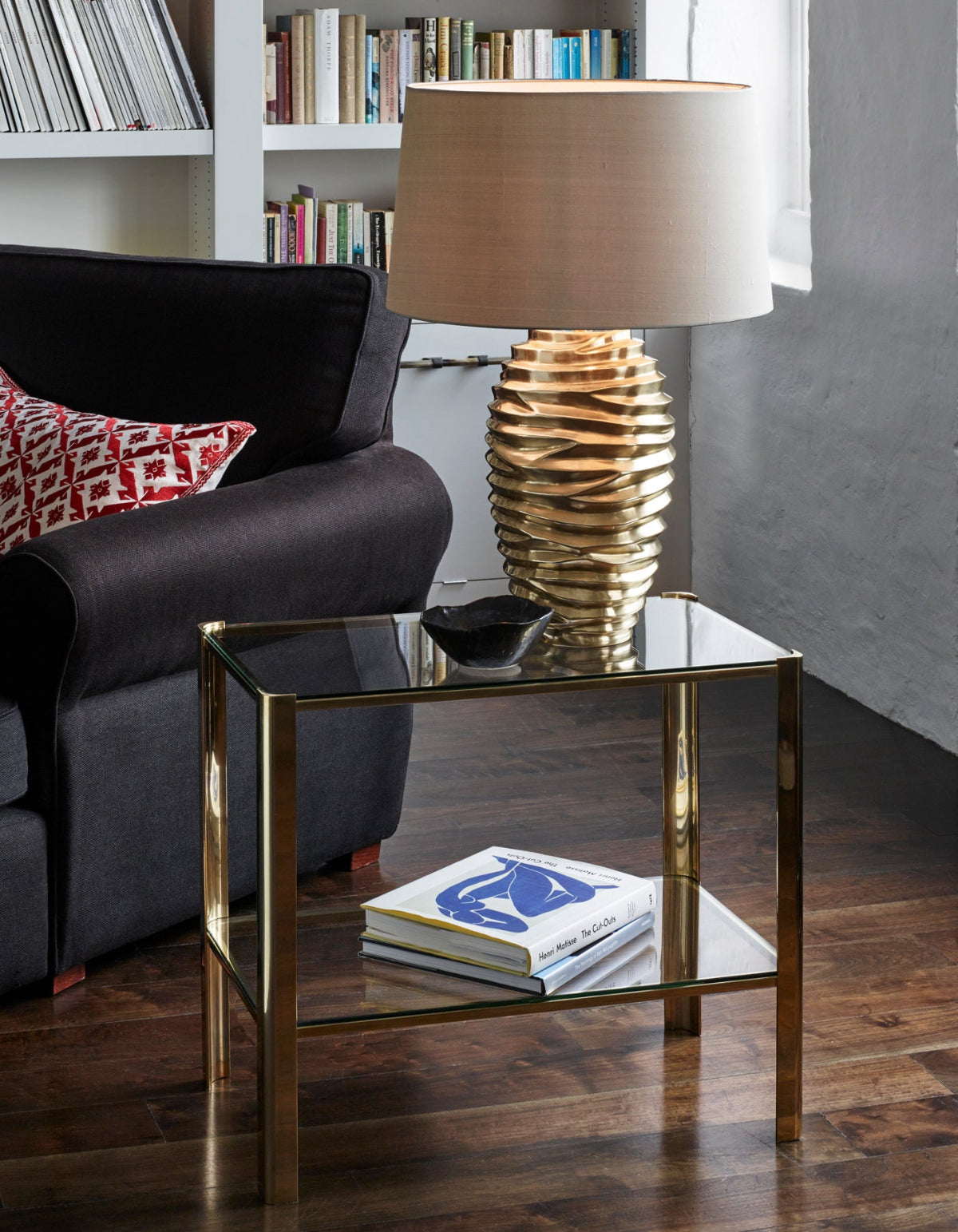 Exklusivt sidobord Rockford, fyrkantigt - Vaughan Designs - Mässing och glas - hos Alegni.com