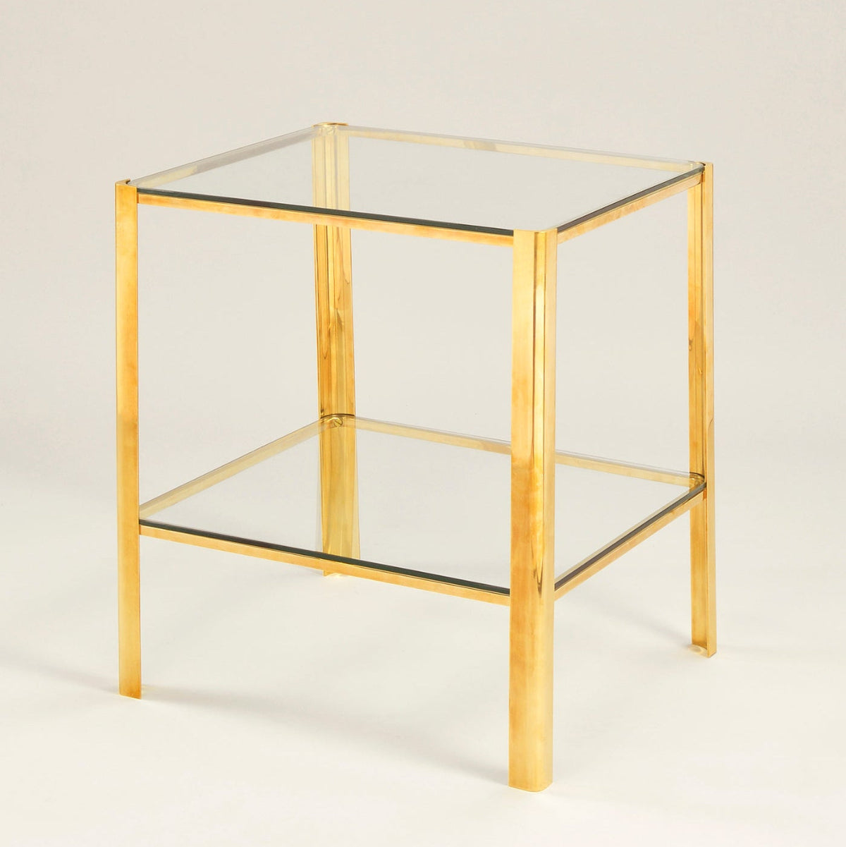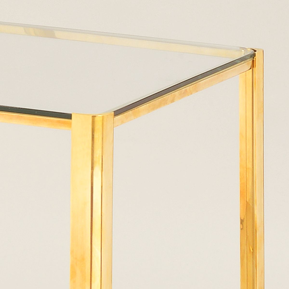Ett mindre kvadratiskt bord - Underrede i helmässing med härdade glasskivor